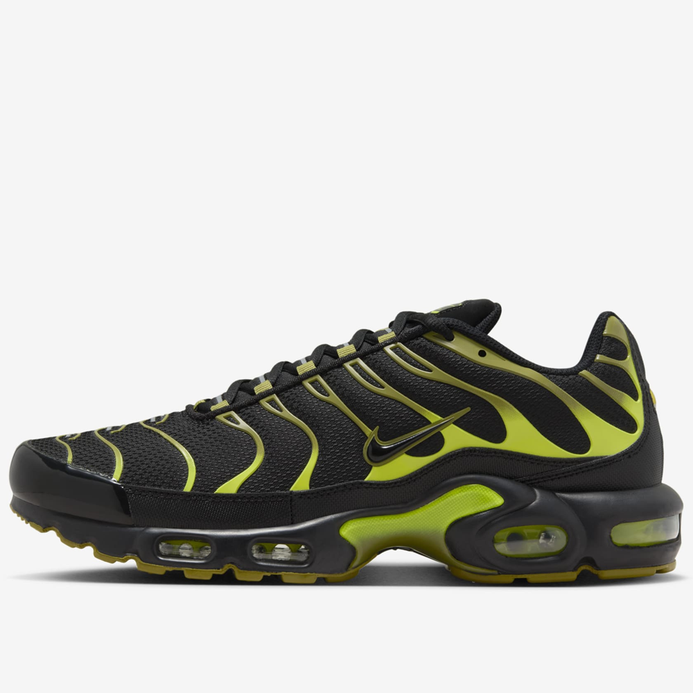 Let your attitude shine with the flared lace structure that adds heat to the streets, while the ventilated mesh keeps you cool. The Nike Air Max Plus gives you a Tuned Air experience that offers premium stability and incredible cushioning.